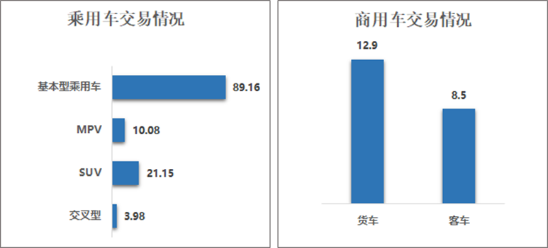 商用车情况: 客车共交易8.51万辆,环比下降4.38%,同比下降5.62%;载货车12.92万辆,环比下降2.77%,同比下降0.7%。