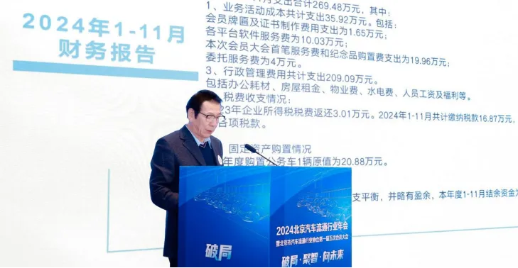 会议审议并通过了协会秘书长刘建华所作的《北京市汽车流通行业协会2024年度1-11月财务报告》。详细报告了协会在财务方面的收支情况。