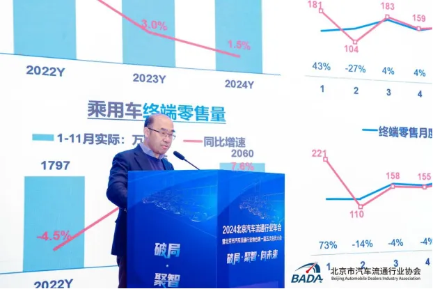 12月19日14:00,由北京市商务局、北京市经济和信息化局作为指导单位,北京市汽车流通行业协会主办的2024北京汽车流通行业年会暨北京市汽车流通行业协会第一届五次会员大会在北京歌华开元酒店国际新闻厅成功举办。