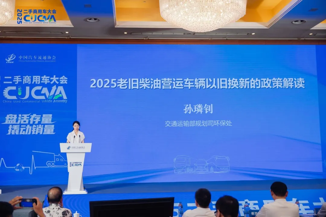 交通运输部规划司环保处孙璘钊女士为与会嘉宾带来了《2025老旧柴油营运车辆以旧换新的政策解读》。她介绍,自2024年国务院印发《推动大规模设备更新和消费品以旧换新行动方案》的通知(国发〔2024〕7号)之后,交通运输部联合多部门围绕“新能源城市公交车及动力电池”“老旧营运货车报废更新”等交通装备领域推进相关资金补贴工作,一定程度上降低了我国商用车市场的下行压力,提振了商用车行业发展的信心。