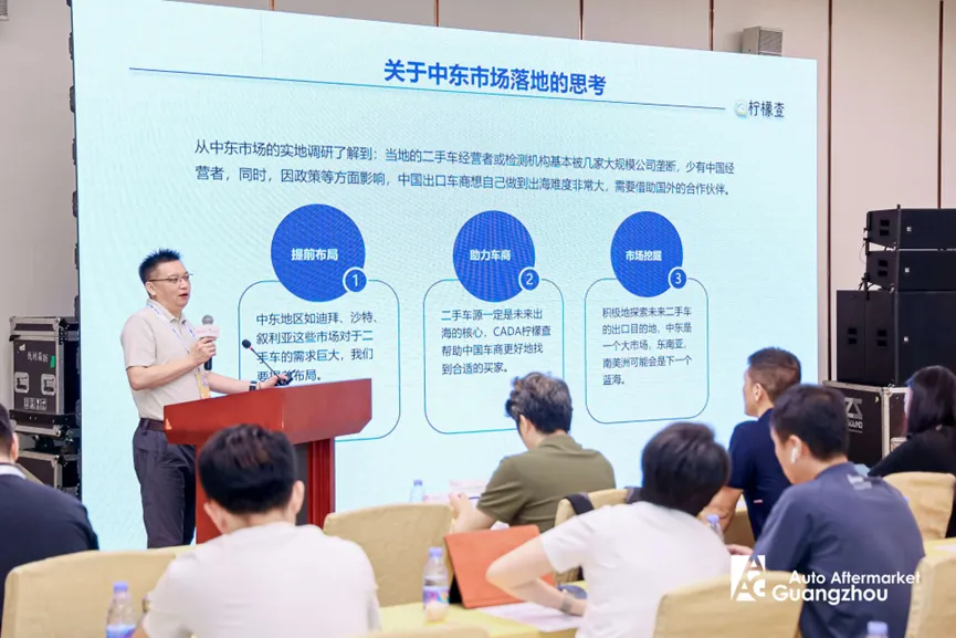 中国汽车流通协会数据应用与消费者研究分会副秘书长常亮,详细介绍了国内外二手车行业发展趋势,他指出国内经销商正在逐步开展认证二手车业务,将来有售后服务保障的认证二手车,将成为二手车交易的主流,为汽车经销商提供新的利润增长点。同时他表示,汽车以旧换新政策的推出旨在鼓励消费者通过置换旧车来购买新车,既有助于推动新车市场的增长,又有助于推动二手车市场的流通和规范化。接下来,他还分享了对中东汽车市场的考察情况。他介绍到中东作为汽车贸易枢纽,迪拜市场以燃油车主导,新能源趋势渐显;约旦则以经济型车为主,混动/EV更受欢迎。中国品牌在中东市场的覆盖度不断提升,车商转型经销中国车辆趋势明显。二手车源是未来出海核心,建议中国车商提前布局中东市场,借助国外合作伙伴探索二手车出口。