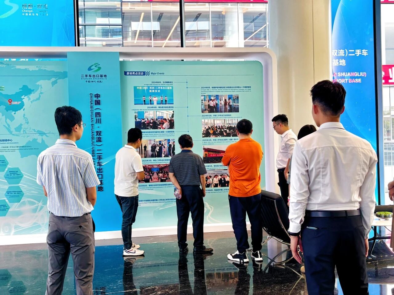 肖政三在认真听取介绍后,对双流区在汽车出口领域取得的亮眼成绩给予高度评价。他表示,中国(四川·双流)二手车出口基地在产业生态构建以及运营发展等方面的成果显著,相关数据充分体现了四川二手车产业强大的供应链优势与突出的国际市场竞争力,为全国二手车出口区域化发展提供了宝贵的 “双流样本”。