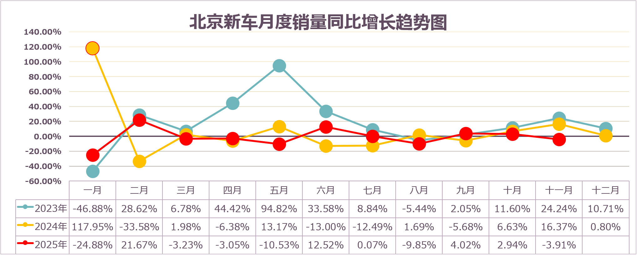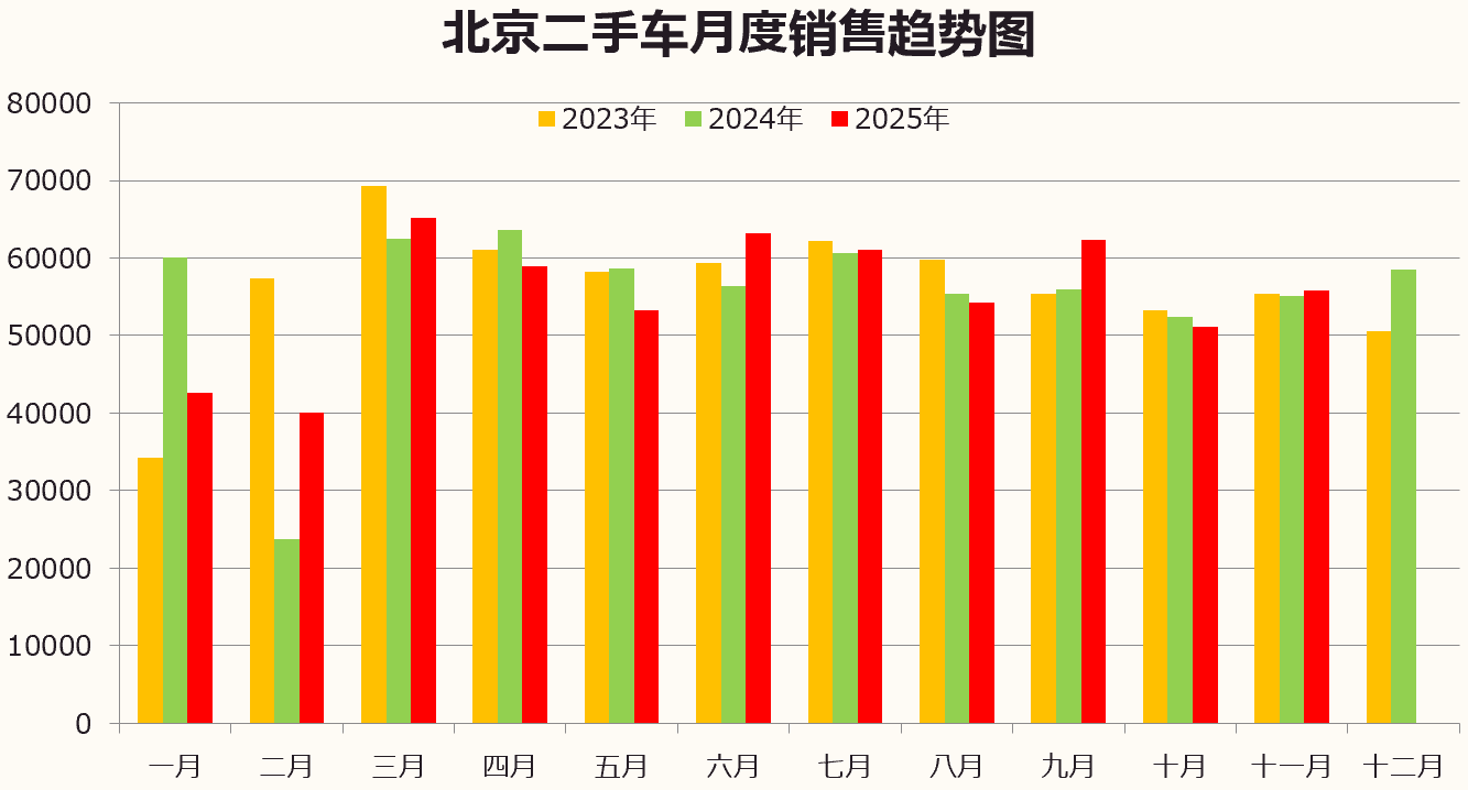 1—11月北京累计交易新车60.77万辆,同比去年62.34万辆下降2.52%,增幅低于全国13.92个百分点。