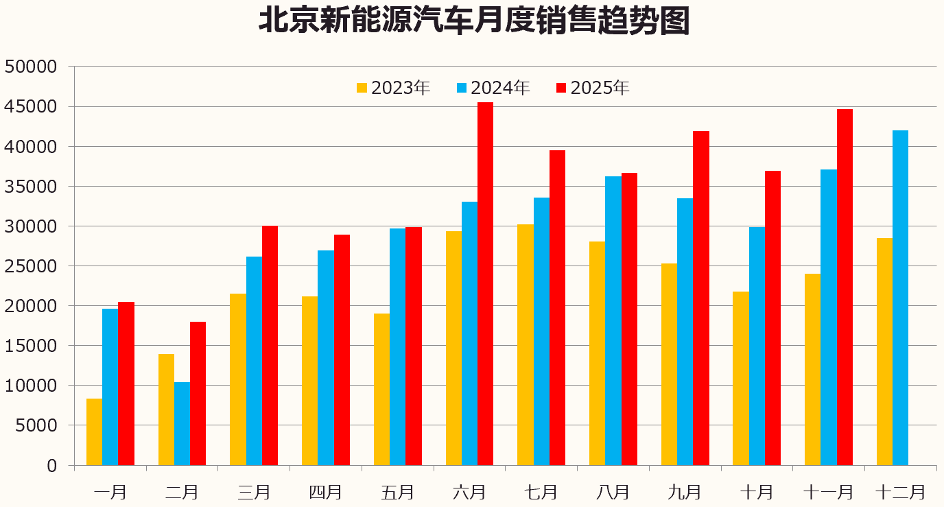 11月份北京实现新车交易6.42万辆,单月销量基本追平9月销量(6.49万),高出2025年月平均销量(5.52)将近9000台。11月北京单月新车销售数据虽然亮丽,环比增长12.88%,但同比仍下降3.91%,与月初的销售预期仍有较大差距。造成11月新车销量低于预期的主要原因是11月10日北京发布了暂停实施汽车报废更新补贴政策的通知。补贴政策的暂停使北京快速释放的汽车消费需求戛然而止。补贴政策的暂停既出乎意外又在预料之中。今年的报废更新补贴政策对市场需求刺激作用巨大,原本预期在年底结束的补贴政策会刺激年底前出现一波购车高峰,但没想到11月初北京就因为资金用尽而提前终止了补贴政策,使原本计划年底前购车的消费者计划落空,致使11月下半月的汽车消费锐减。从市场表现来看,受到政策影响最大的是新能源汽车,在政策缓冲期的几天内,新能源汽车出现了集中交易,而在政策停止后,各新能源汽车品牌都出现了短期30%-70%的销量下滑。受集中突击消费的影响,11月北京新能源汽车共交易4.46万辆,环比增长20.83%,同比增长20.36%,新能源汽车销量占比创下新高,达到69.49%。纯电动汽车销售2.32万辆,占新能源汽车销量64.92%。在国产新能源汽车不断增长市占率的情况下,北京进口车消费市场则依旧惨淡,11月进口车销售只有2074辆,虽环比增长11.93%,但同比下降31.66%。市场占有率继续下滑到3.23%再创新低。