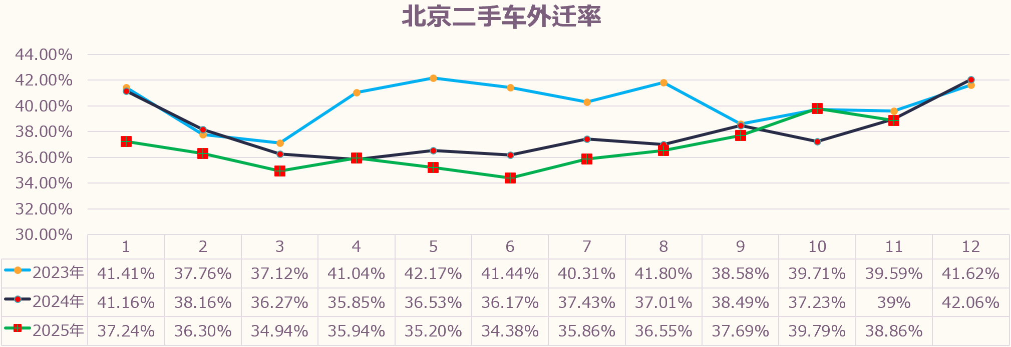 10月份北京二手车交易外迁率为39.79%,外迁率环比上升2.1个百分点,同比增长2.56个百分点。