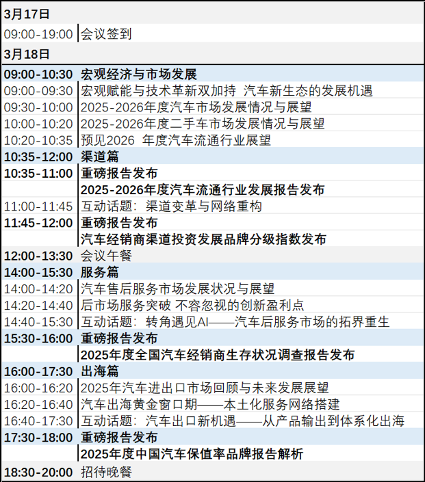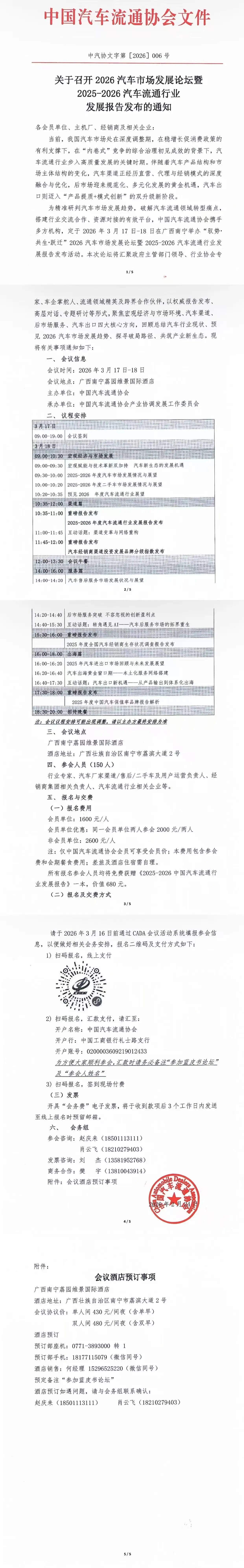 由中国汽车流通协会主办的“驭势·共生·跃迁”2026汽车市场发展论坛暨2025-2026汽车流通行业发展报告发布活动定于2026年3月17日-18日在广西南宁召开。