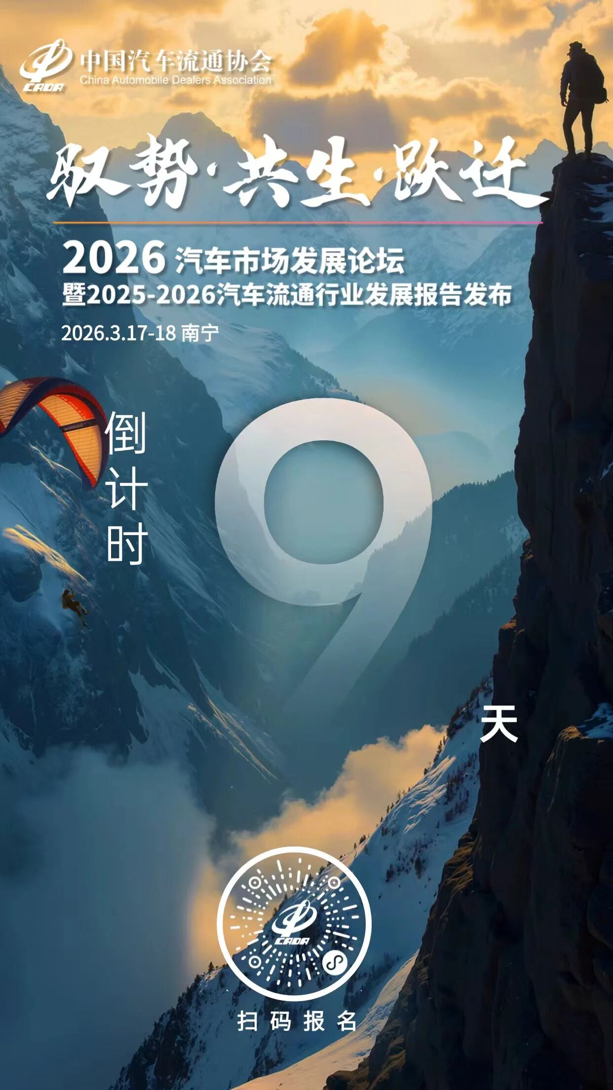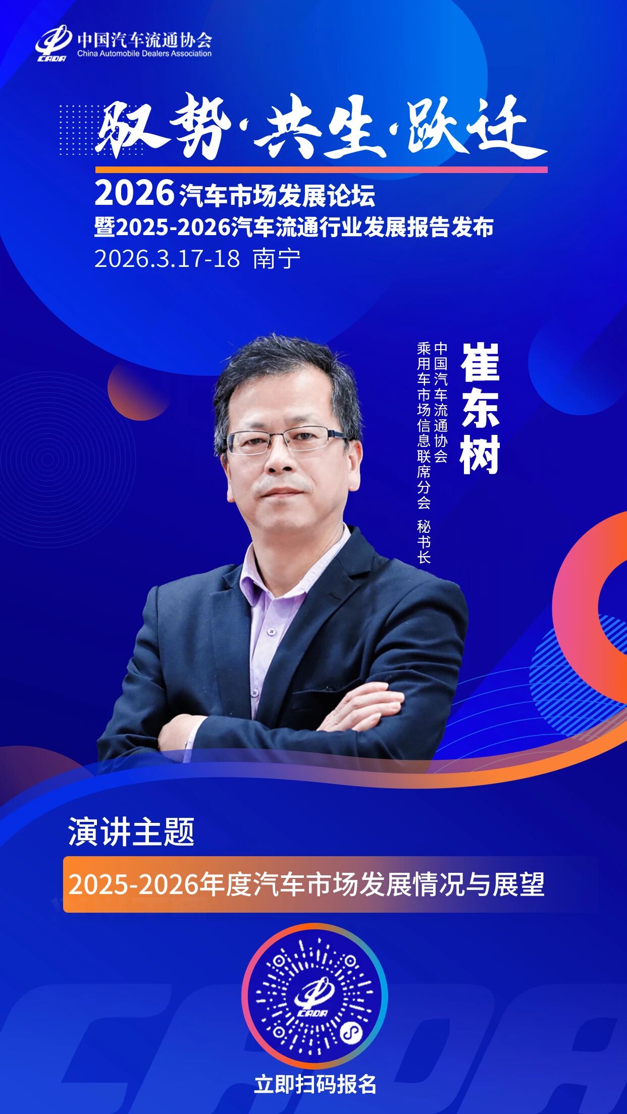 由中国汽车流通协会主办的“驭势·共生·跃迁”2026汽车市场发展论坛暨2025-2026汽车流通行业发展报告发布活动定于2026年3月17日-18日在广西南宁召开。