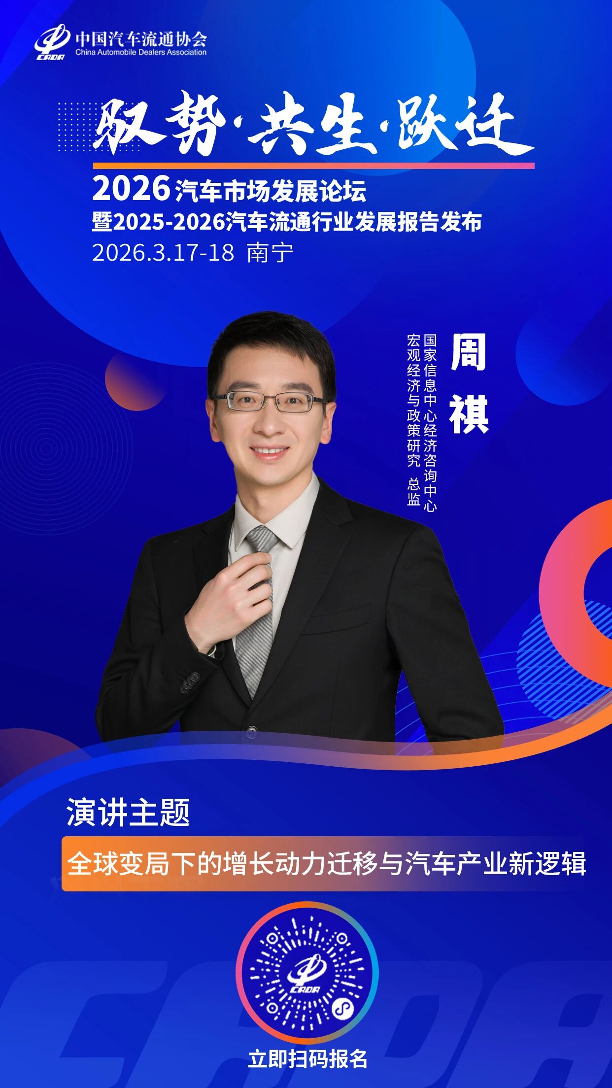 周祺先生长期深耕宏观经济形势研判与产业政策研究领域。他的演讲将从全球视野出发,解析在百年变局加速演进的背景下,中国经济增长动力的深刻迁移,以及这种迁移如何重塑汽车产业的底层逻辑。从宏观大势到产业脉络,他将为与会者提供战略层面的清晰指引。