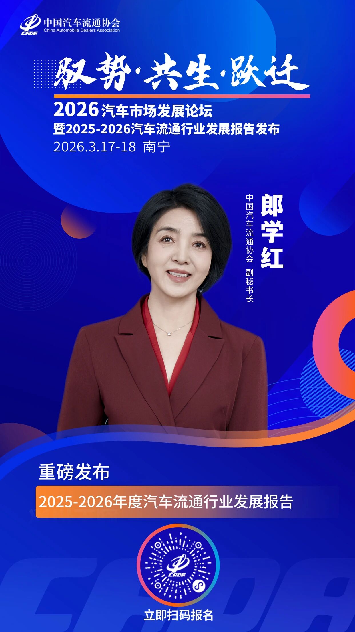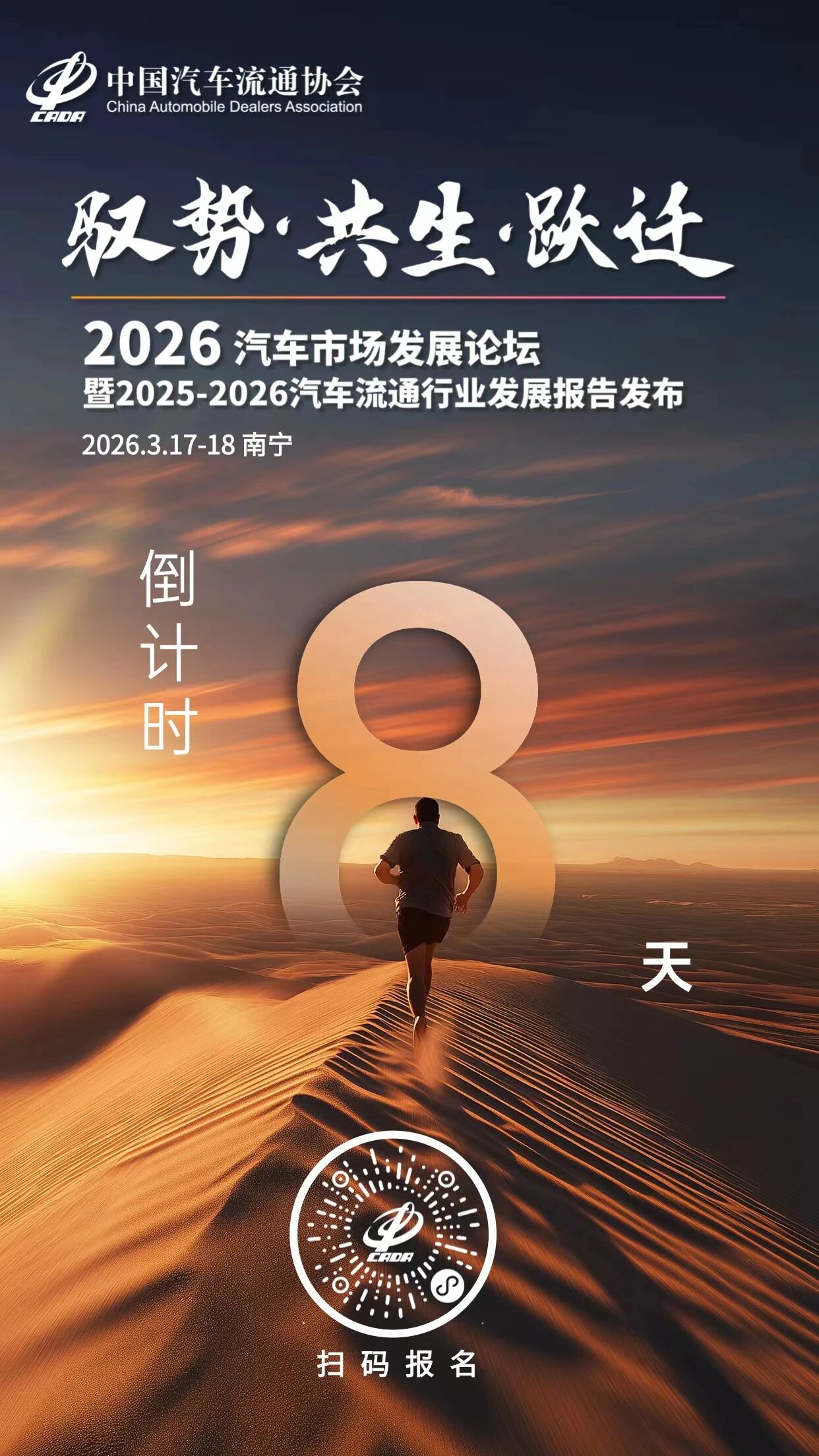 由中国汽车流通协会主办的“驭势·共生·跃迁”2026汽车市场发展论坛暨2025-2026汽车流通行业发展报告发布活动定于2026年3月17日-18日在广西南宁召开。