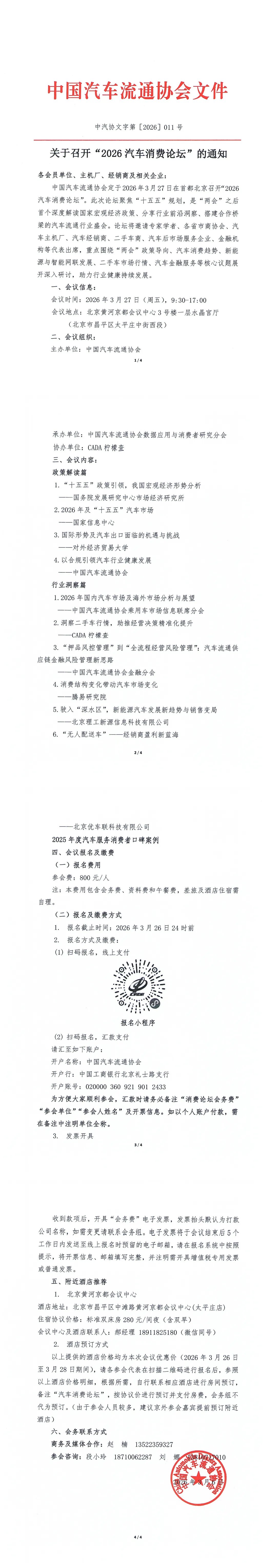 关于召开“2026汽车消费论坛”的通知